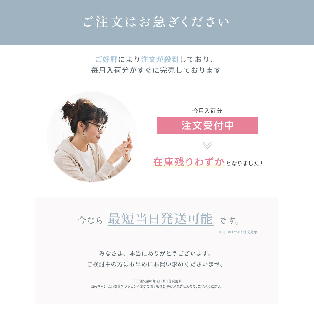 高品質な商品だから出来る、ご購入後も安心のサポートをご用意しております。 お客様都合の場合、返送料はお客様ご負担となります。 店舗都合(製品不具合)の場合、原則返送不要で全額返金又は代替品発送をさせていただきます。 製品不具合の場合、不具合箇所の写真送付をお願いする場合がございます。 |
